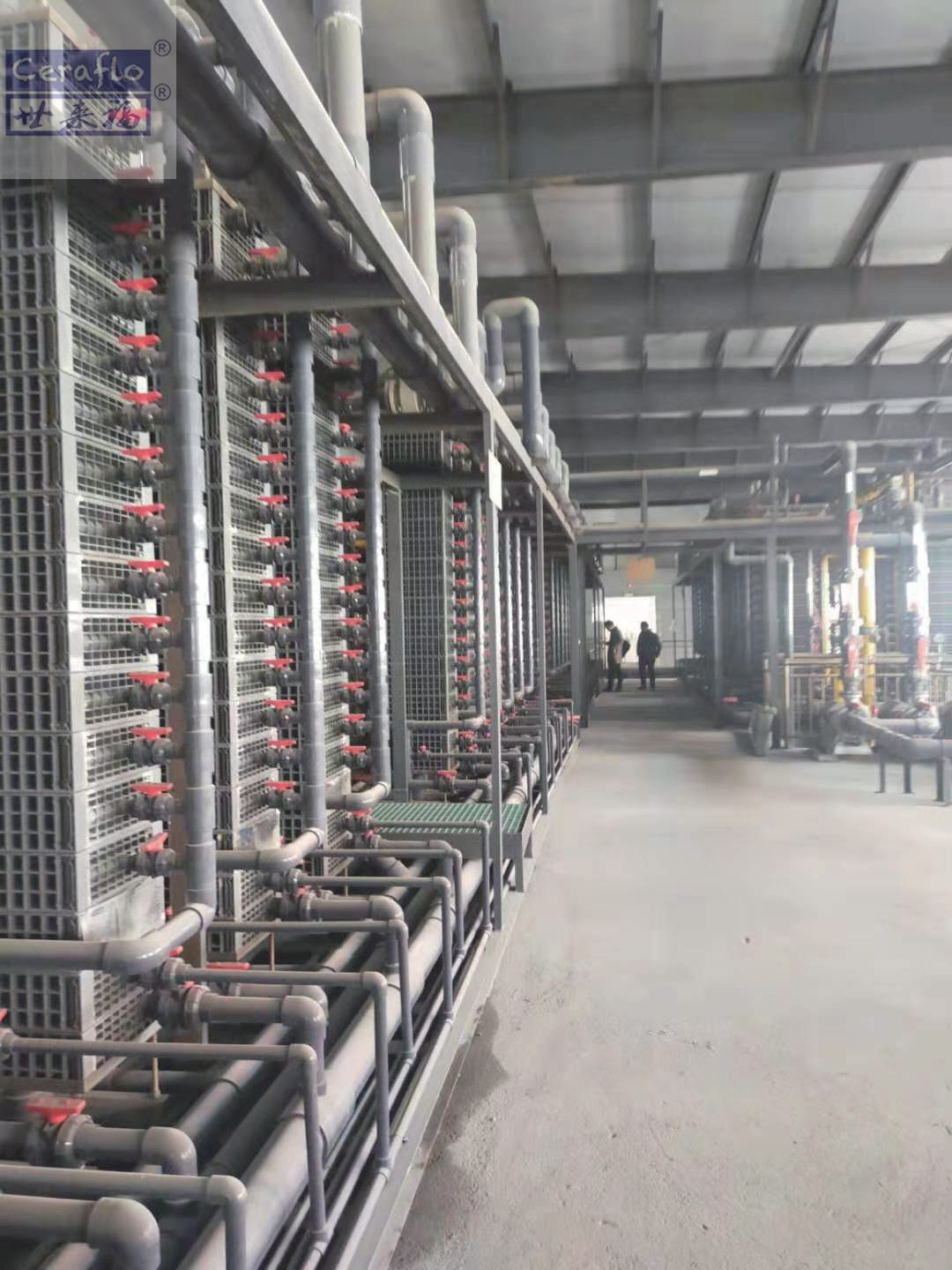 鄭州某知名代工工業園8000t/d陶瓷膜MBR系統于2016年成功試水,正式投入運行,主要處理工業廢水,出水水質達到《污水綜合排放標準》(GB8978-1996)一級A排放標準,達到該廠區回用水標準。成為又一大型且配套完善、成功運行的陶瓷膜MBR系統。